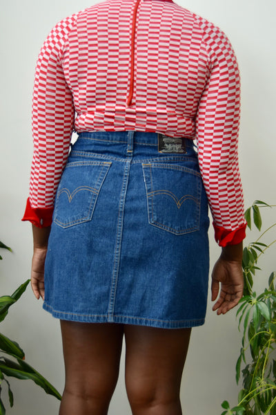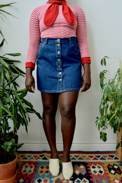 Levis "Silvertab" Denim Skirt. Dark Wash. Button Front. Five Pockets. Unlined.