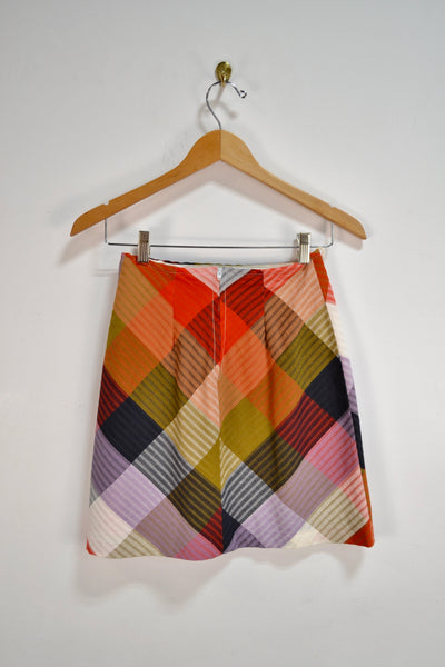 Vintage Seventies (ish) Patterned Mini Skirt. Unlined. Lightning Zipper Closure in Back.