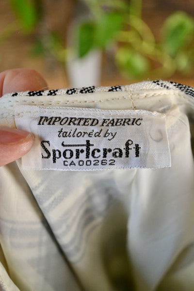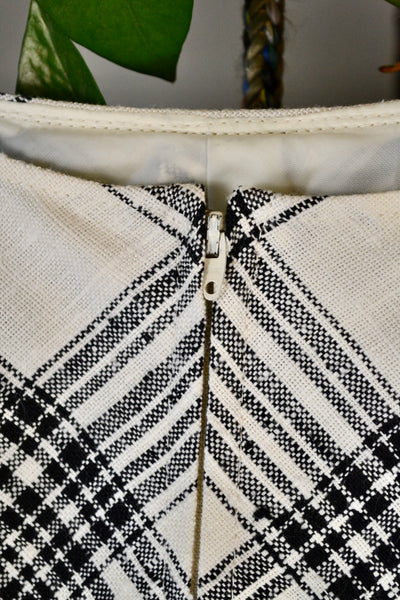 Vintage 60s/70s White and Black Slubbed Cotton A-Line Plaid Skirt. Lined. Lightning Zipper Closure.