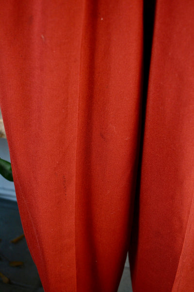 Vintage Forties/Fifties Burnt Orange/Crimson Riding Jumpsuit. Pleated Waist. Side Metal Lightning Zipper Closure. Tapered Leg With Elastic Cuffs and Stirrups.