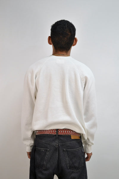 1990 Michigan Wolverines Rose Bowl "Back to Back" White Sweatshirt. Raglan Sleeve. Ribbed Collar, Cuffs and Hem.