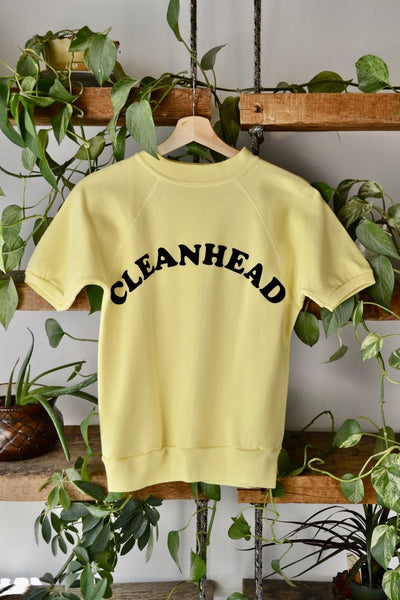 Vintage 60s/70s Baby Yellow Raglan Sleeve Sweatshirt Tee. Flocked "50" on Front, Flocked Lettering on Back "Cleanhead"
