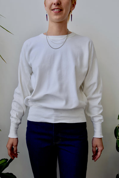 Jersey Cotton White Sweatshirt. Thick Ribbed Waist Band And Cuffs.