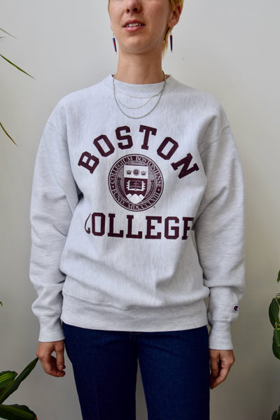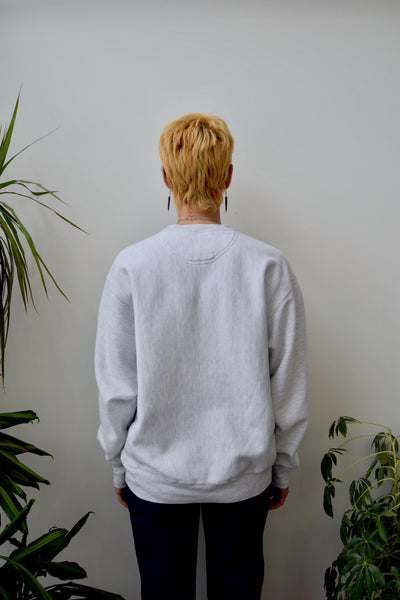 Light Heather Grey Reverse Weave Champion Crew Neck Sweatshirt.