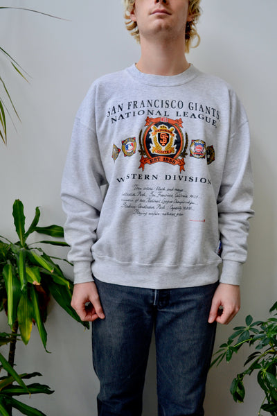 1991 San Francisco Giants National League Western Division Embroidered Crewneck Sweatshirt. Heather Grey. Nutmeg Label.
