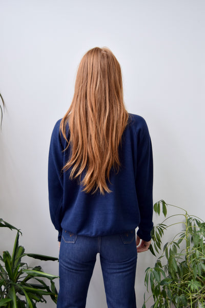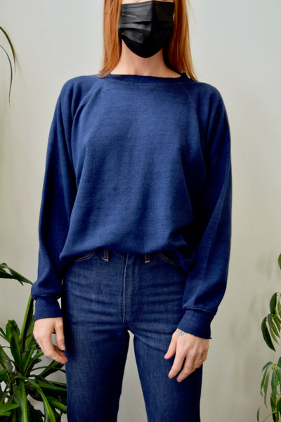 Vintage Navy Raglan Raglan Sweatshirt. Soft 50/50. Crew Neck.