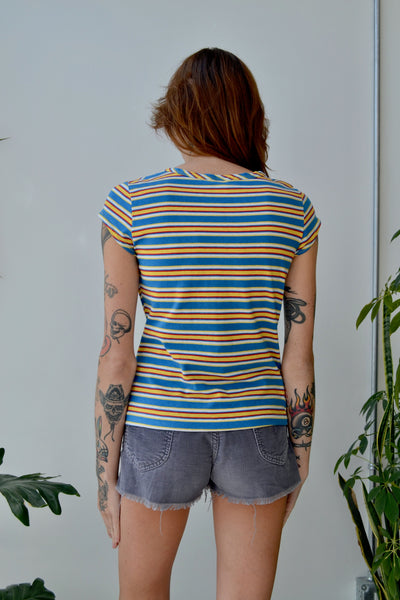 Seventies "Sears Jr Bazaar" Striped Baby Tee. Single Stitch. Cap Sleeve.