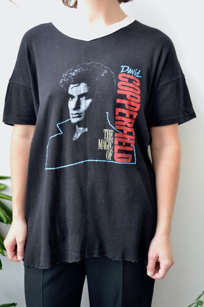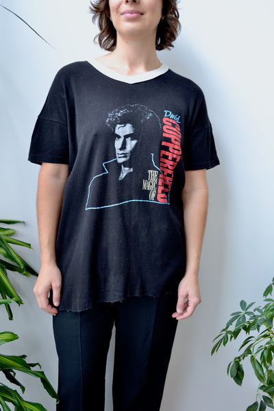 Vintage 1980s "The Magic of David Copperfield" Sleep Tee. Ringer Style V-Neck. Serged Hem.