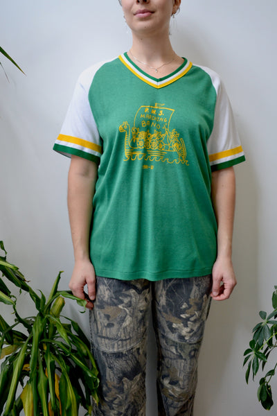 "P.H.S. Marching Band 1980-'81" Green Raglan Ringer Tee. Single Stitch.