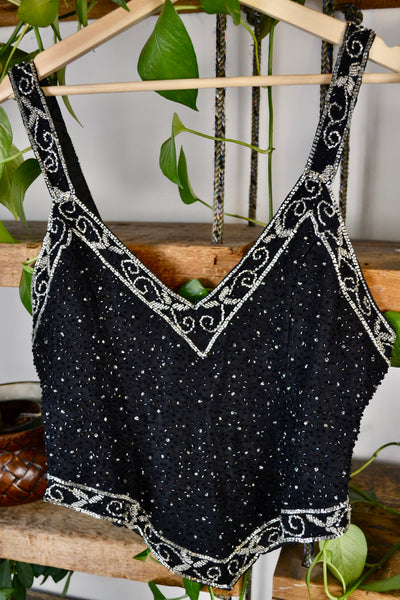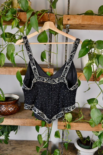 Gorgeous Vintage 90s Beaded Party Top. Zipper Closure in Back. Lined.