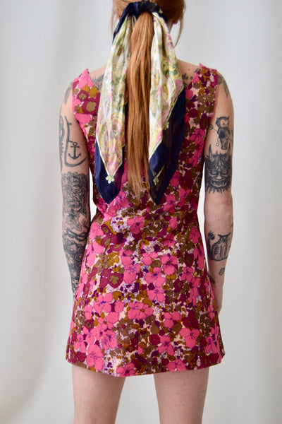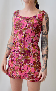 Floral Nylon Mini Dress With Bust Darts And Front Covered Buttons. Lined.