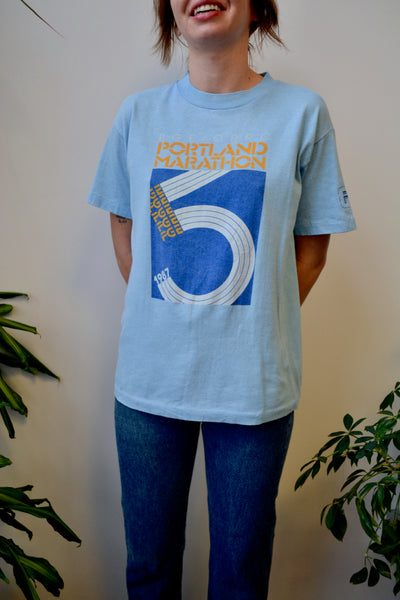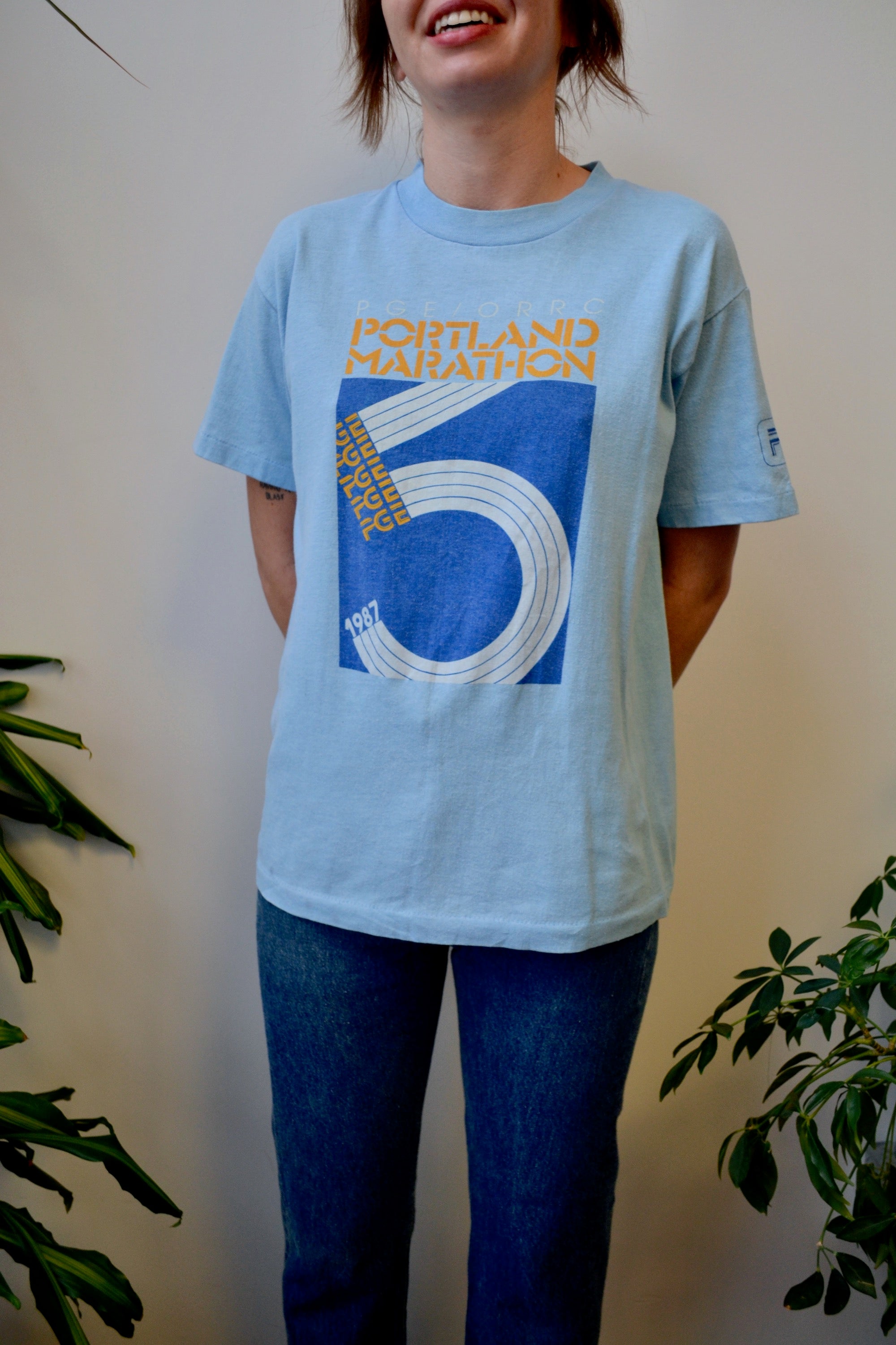 "PGE/ORRC Portland Marathon 1987" Vintage Tee. Hef-T by Tee-Jays Label. Single Stitch. Crew Neck.