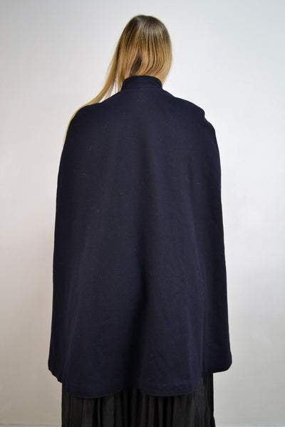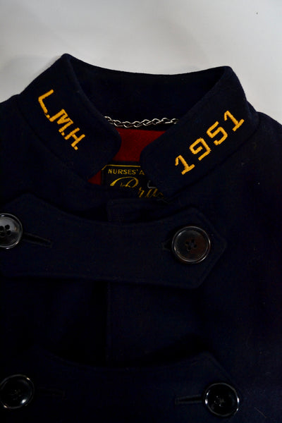 1951 Brucks Nurse's Apparel Navy Blue Wool Cape Coat. Red Wool Lined. Button Closure in Front Near Collar. Mock Neck.
