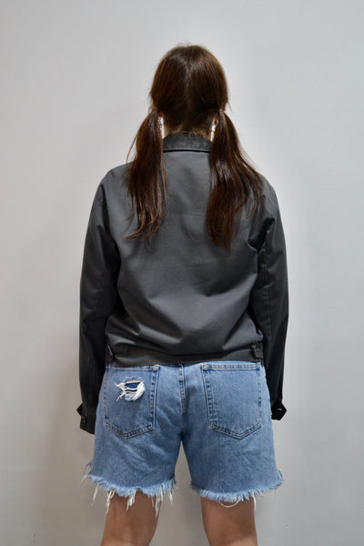 50s/60s "Topp Master" Charcoal Grey Light Cotton Jacket. Classic Collar. Talon Zipper Closure. Four Pockets. Button Closure Cuffs. Unlined.
