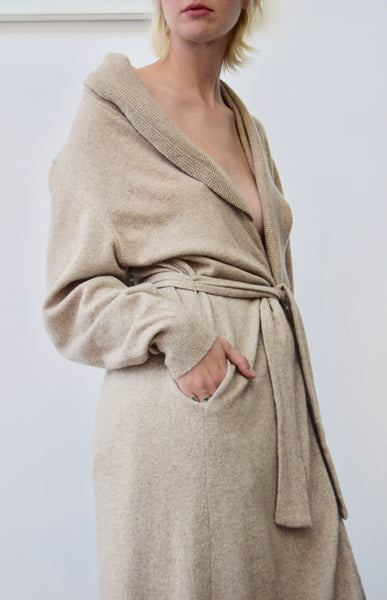 GORGEOUS 70's Cashmere Robe With Shawl Collar And Belt Tie. Single Hip Pocket.