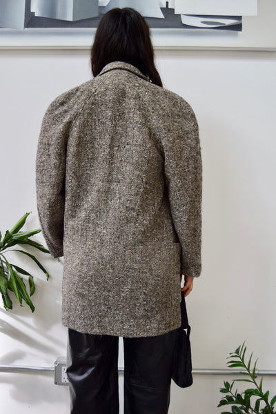 Tweed Wool Kenzo Blazer. Two Button Closure. Extra Long Length. Two Hip Pockets.