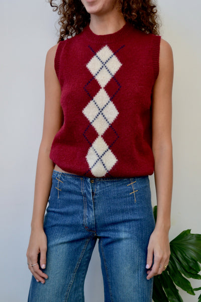 Eighties/Nineties "LL Bean" Dark Red Argyle Knit Vest.