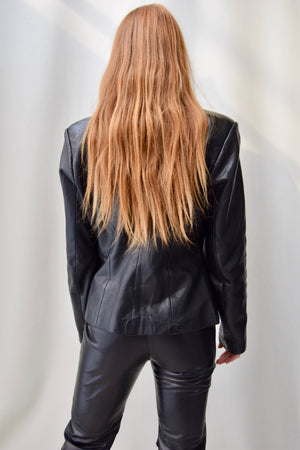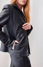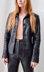Super Soft 90's Button Up Leather Jacket With Fitted Body And Two Slit Hip Pockets.