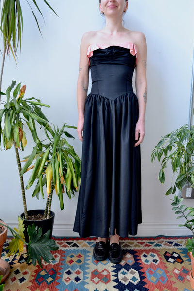 Sixties Black and Pink Taffeta Party Dress. Zipper Closure Up Back. Unlined.