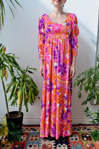 Seventies "Speedo" Empire Waist Nylon Beach Cover Up Dress. Elastic Waist. Bell Sleeves. Semi Sheer. Unlined.