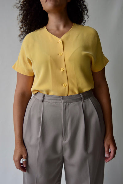 "Jones New York" Silk Top. Button Up. Collarless. Cropped.