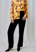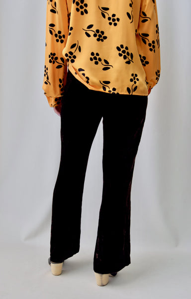 Chocolate Silk Blend Velvet Trousers. Side Zip Closure. Straight Leg. Unlined.