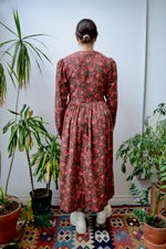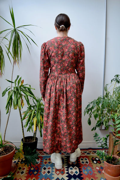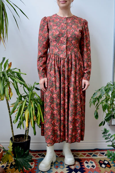 Classic Nineties Laura Ashley Floral Dress. Button Closure Up Front. Long Puff Sleeves. Two Pockets. Unlined.