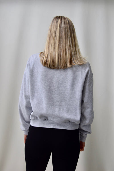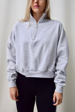 Grey Pullover Half Zip Sweatshirt. Cropped In House.