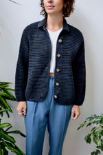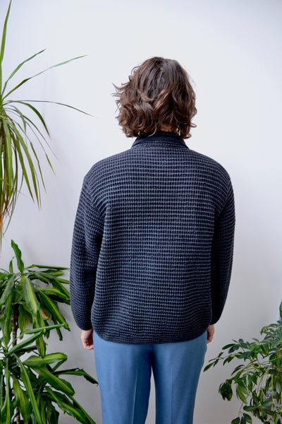 Nineties Faded Black Cotton Waffle Knit Jacket. Button Closure Up Front. Unlined.