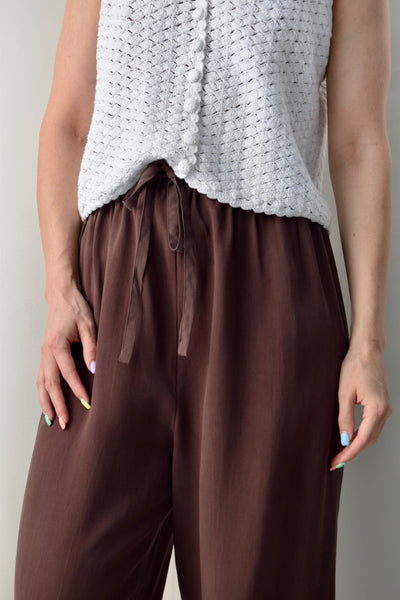 100% Silk Lounge Pants. Elastic Waist with Tie. No Pockets. Clio Brand.