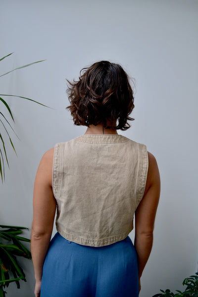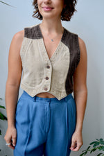Nineties Two Tone Cropped Western Denim Vest. Button Closure Up Front. V-Neck. Unlined.