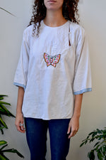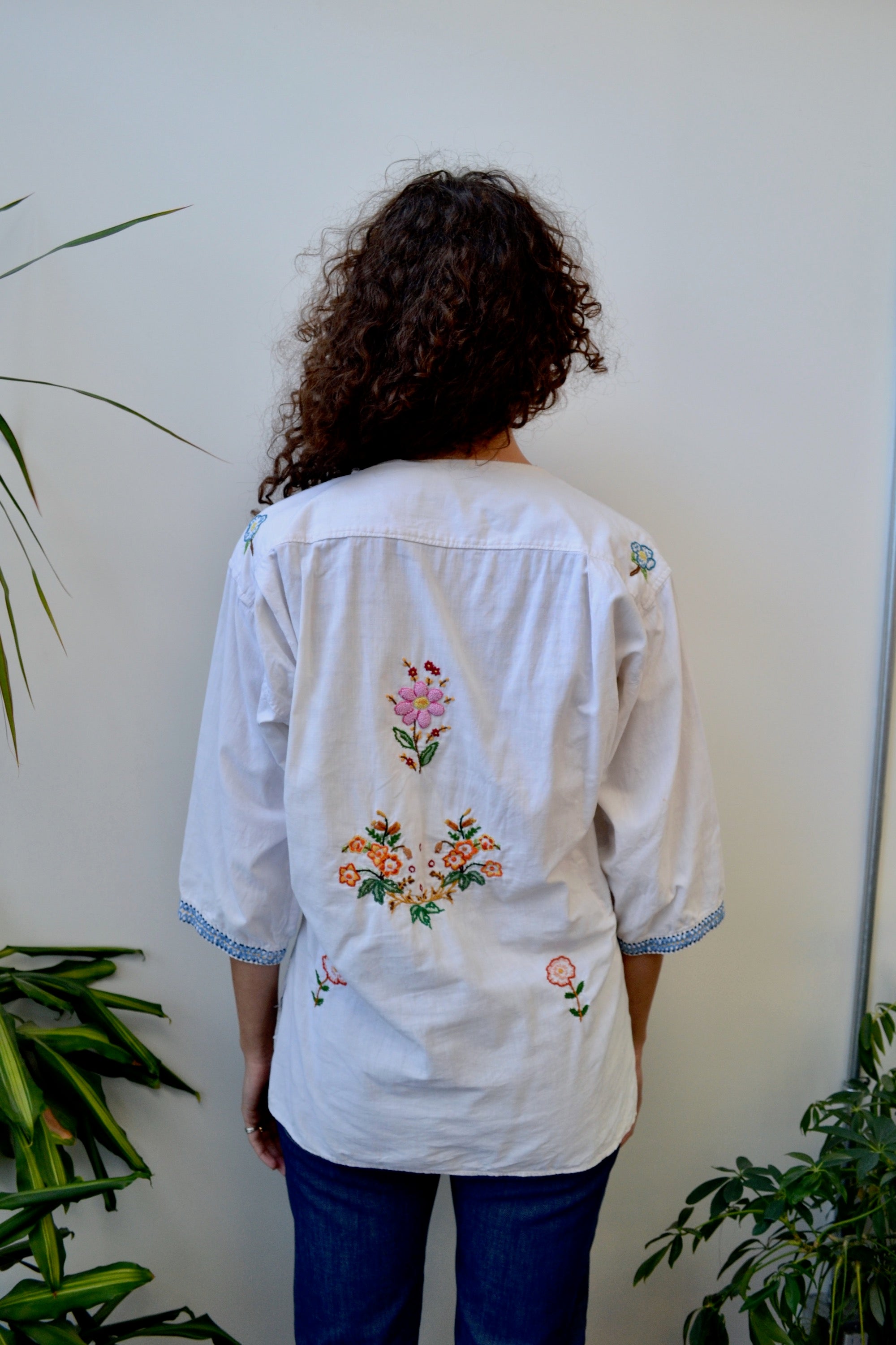 Vintage Folk Blouse. Side Bib Button Closure. Secret Side Seam Pocket. Unlined.