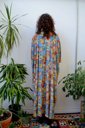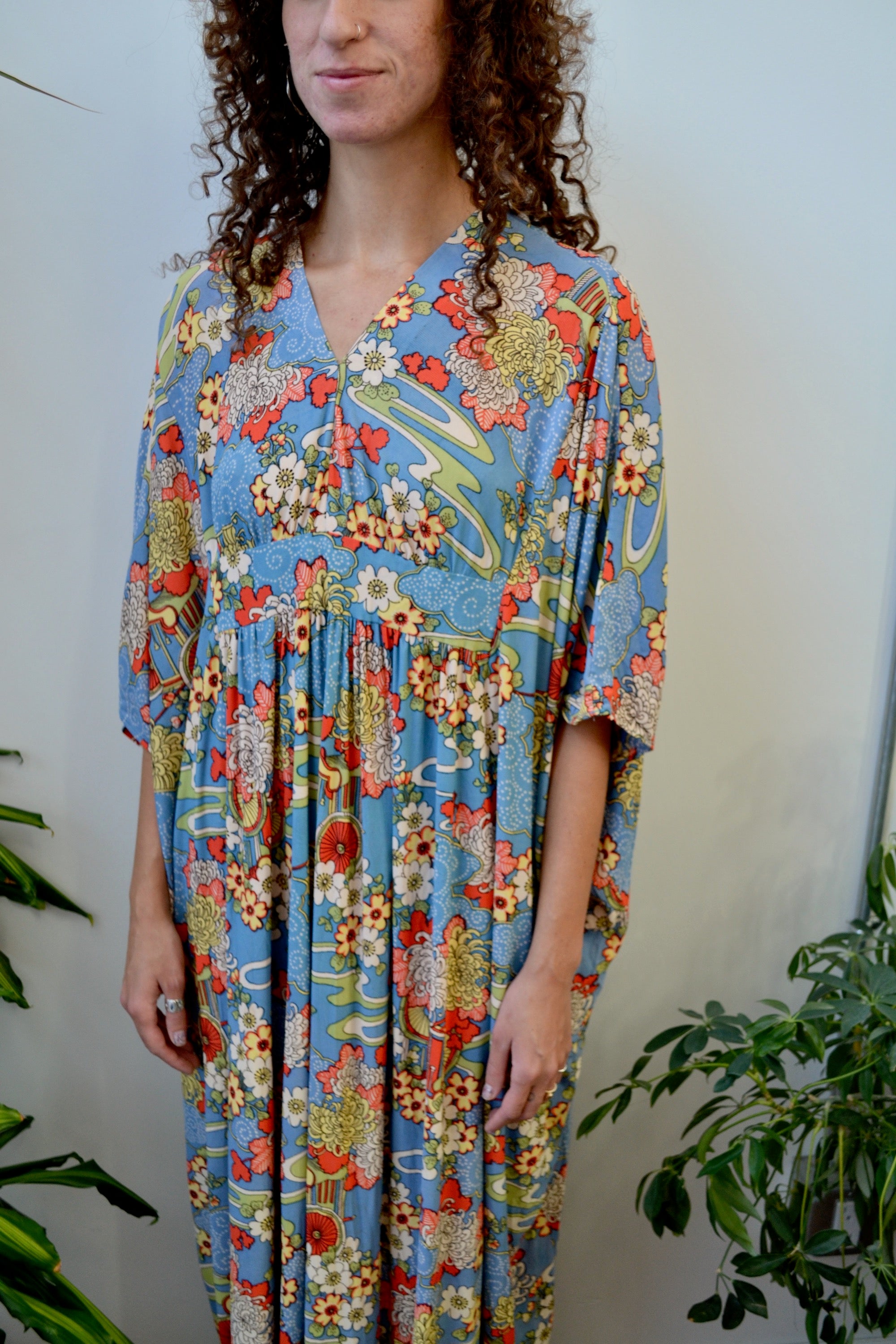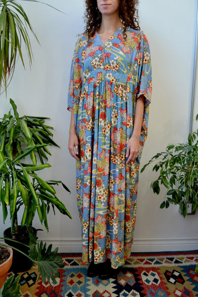 Vintage 1970s House Dress. Flower Cart Print. No Closures. Unlined.