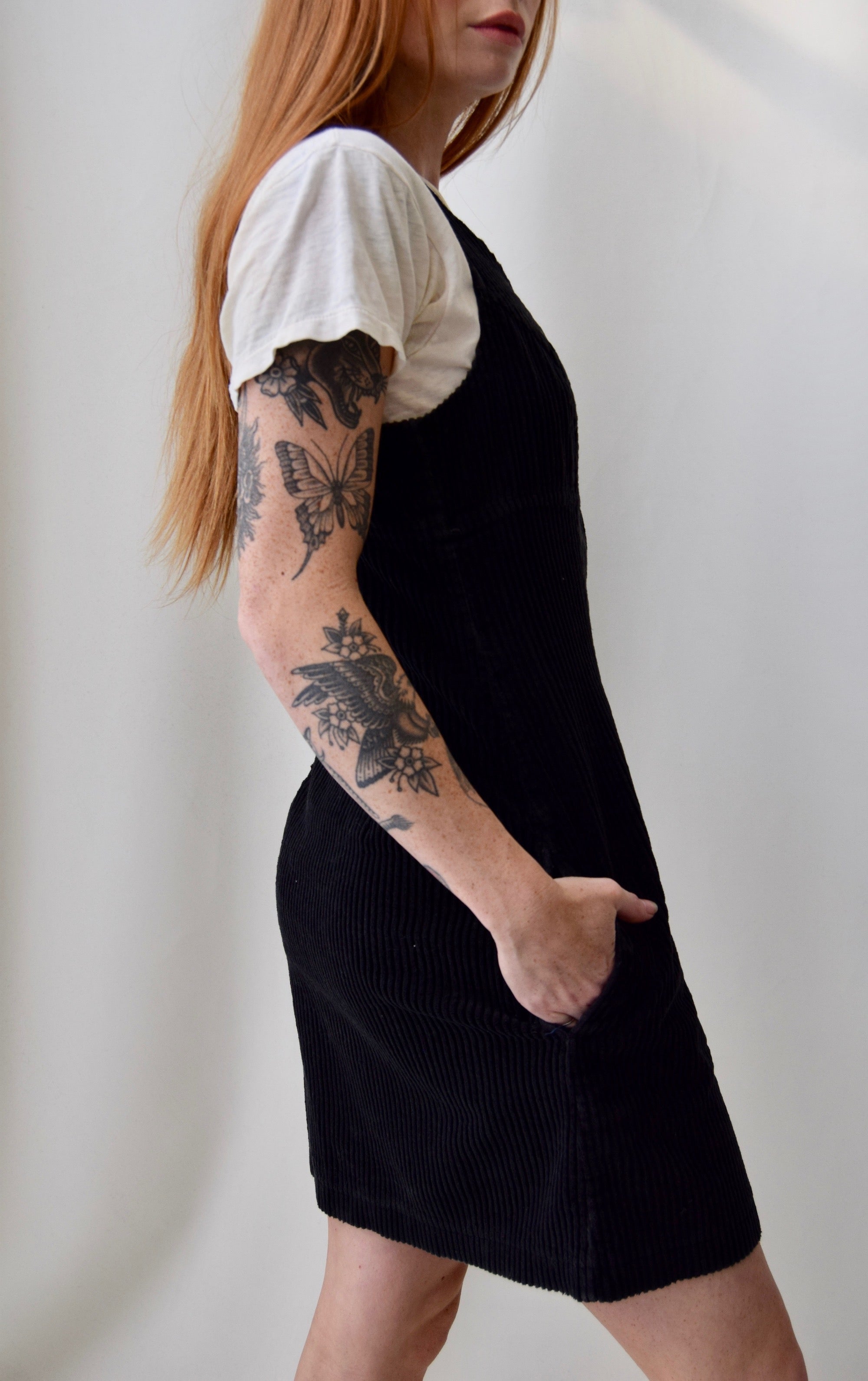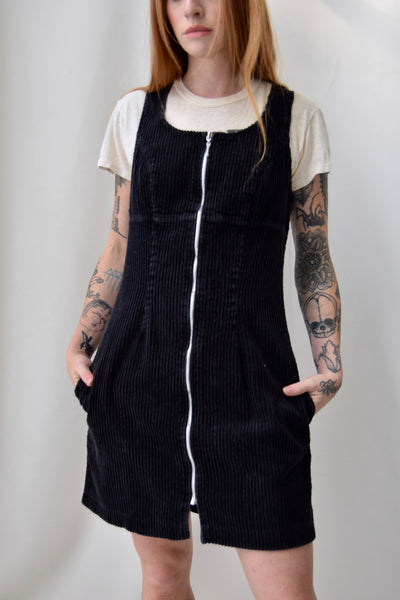 Black Corduroy Dress. Full Length Front Zipper. 2 Hip Pockets.