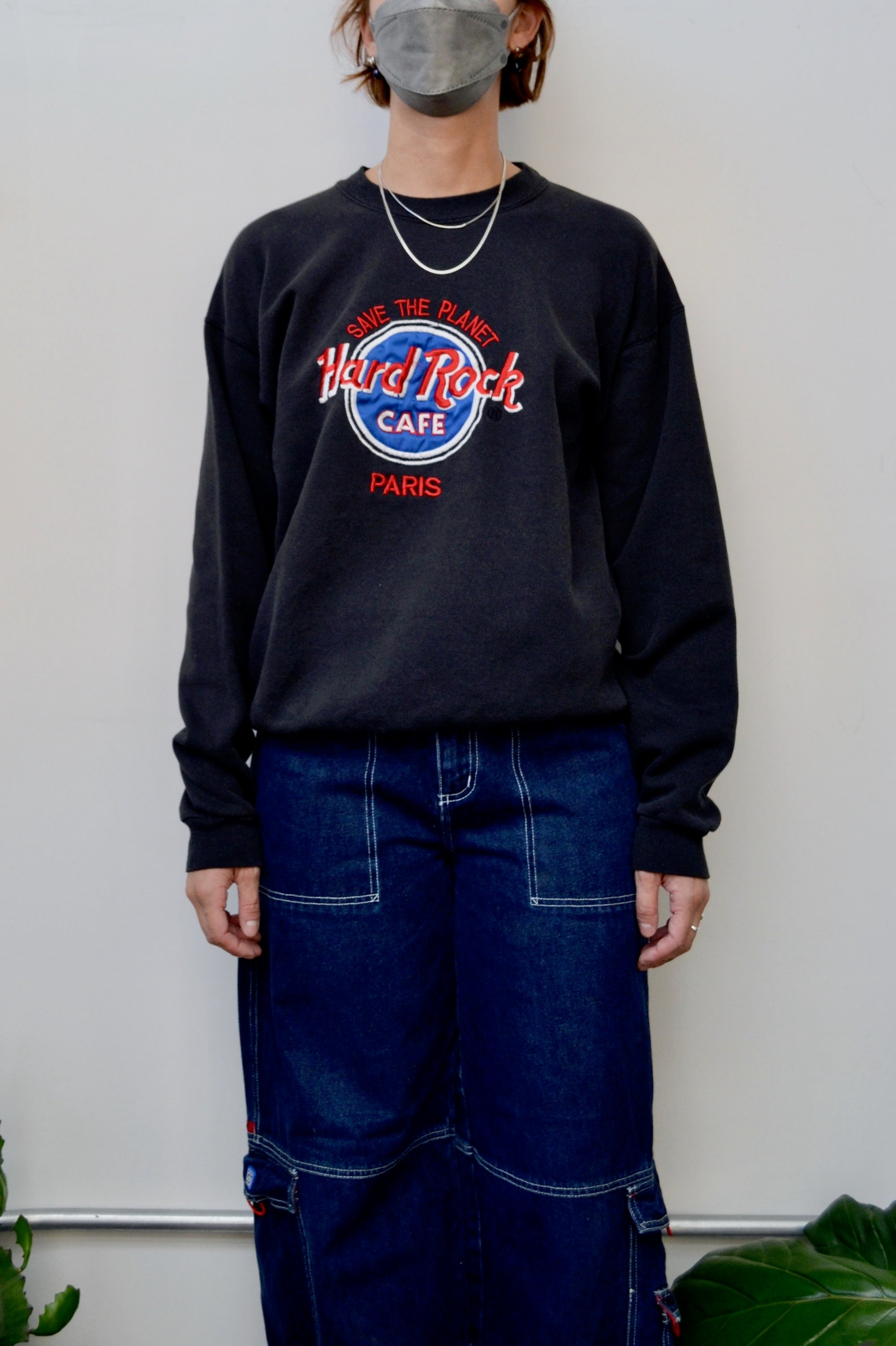 Nineties "Hard Rock Cafe Paris, Save The Planet" Embroidered Crewneck Sweatshirt. Hard Rock Cafe Label.