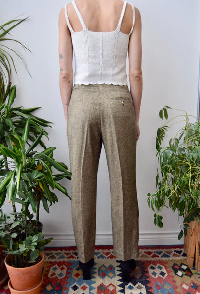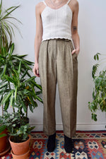 Herringbone Silk Trousers. Three Pockets. Zipper Fly. Button Waist. Unlined.
