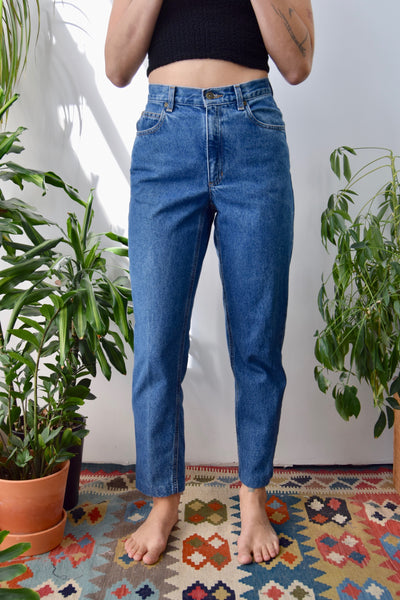 Lizwear Medium Wash Classic Fit Mom Jeans. Five Pockets. High Waisted. Zipper Fly Button Waist.