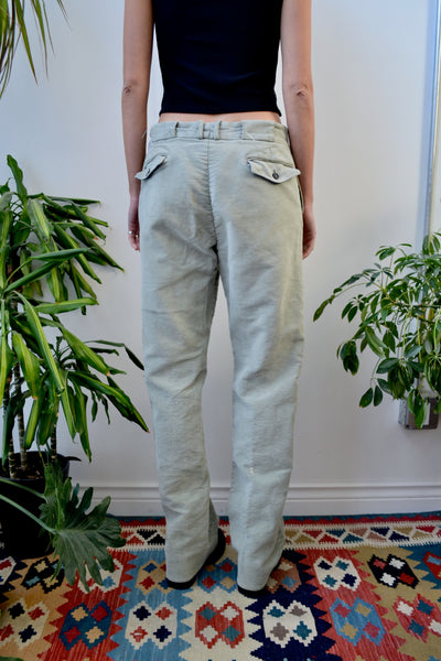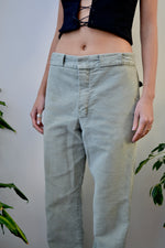 Vintage 60s/70s LL Bean Sage Green Cotton Flannel Trousers. Straight Leg. Zipper Fly. Hook And Eye Waist. Four Pockets. Unlined.