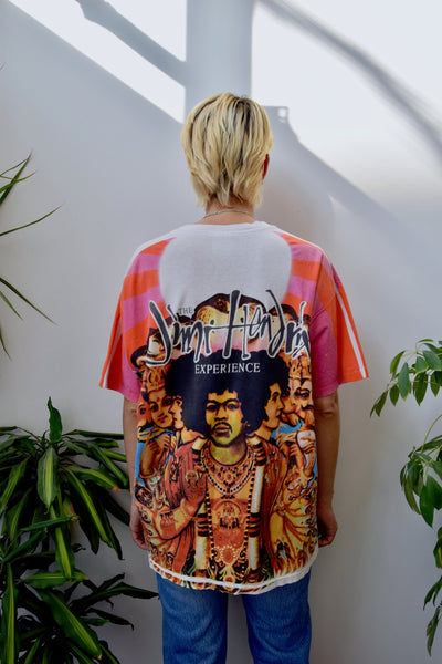 Vintage 90's Jimi Hendrix Experience Tee. All Over Print. Crew Neck. Single Stitch. "Hanes Ultraweight" Label.