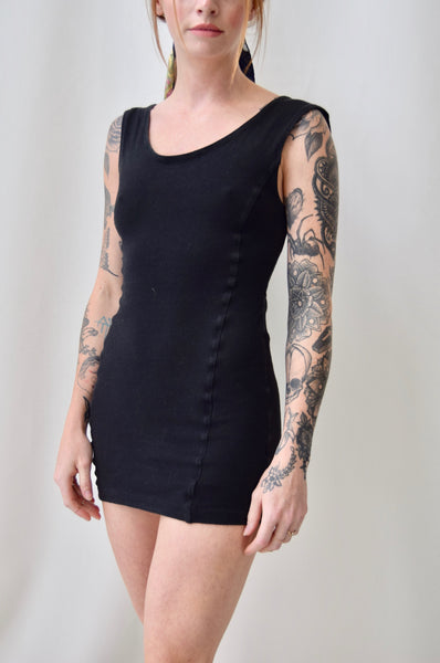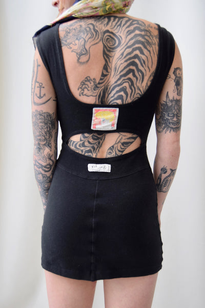Black Bodycon Dress. Oval Back Opening. Mini Art Detail on Back. Has Some Stretch.