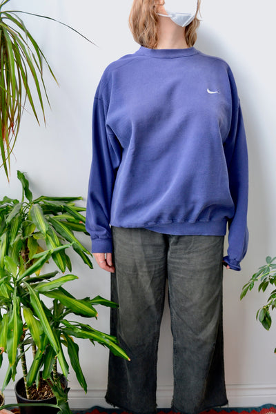 Late Nineties Navy Blue Crewneck Sweatshirt. Embroidered Swoosh.