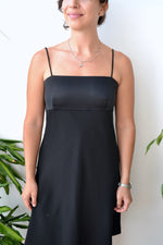 2000s Black Empire Waist Cocktail Dress. Zipper Closure Up Back. Contrast Satin Bodice. Lined.