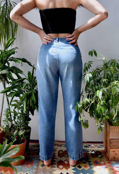 Soft Worn Trouser Jeans. Front Pockets And Waist Pleating. Straight Leg Fit With Large Hem. Zipper Fly And Button Waist.