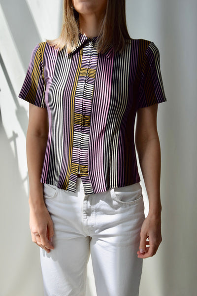 Multi Colour Ombrèd Stripe Top. Zipper Closure Along Front. Collared.