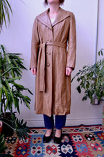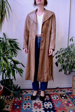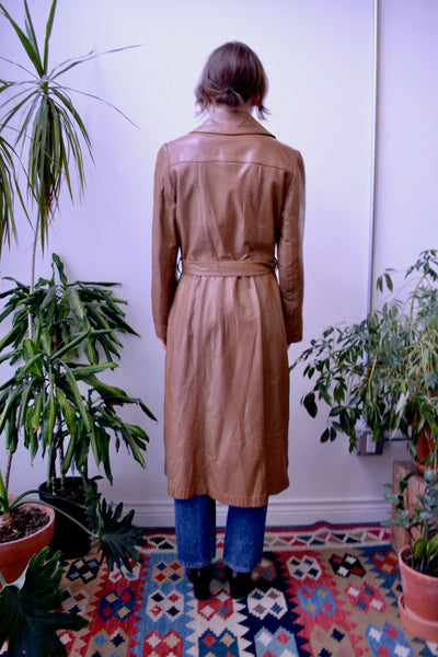 Vintage 1970's Light Brown Trench Coat. Wing Collar. Button Closure Up Front. Sash Belt. Two Pockets. Lined.