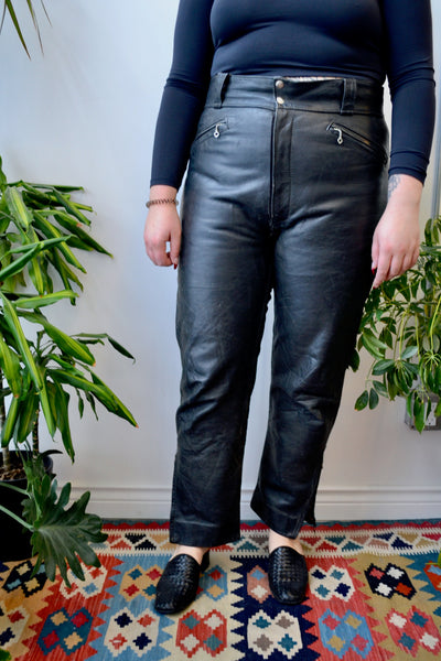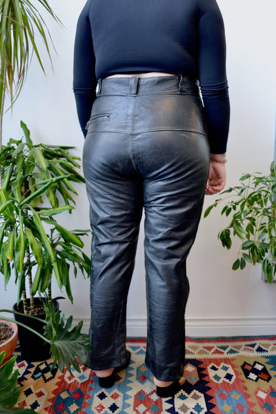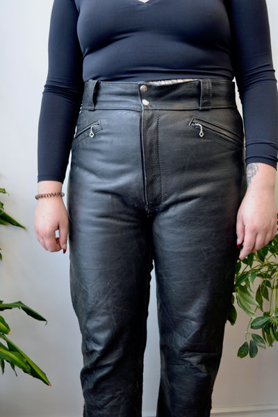 Vintage 1960's Harley Davidson Leather Motorcycle Pants. Conmar Zipper Fly. Double Snaps Waist. Two Hip Pockets One Back Pocket All With Drop Conmar Zippers. Coats Clark Ankle Zippers. Mostly Lined.
