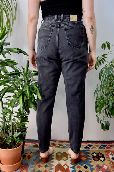 High Waisted Tapered Leg Lee Mom Jeans. Five Pockets. Zipper Fly And Button Waist.