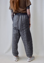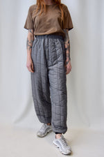 Stone Grey Quilted Pants. Elasticized Waist. Snap Button Closure. Cuffs At Ankles.