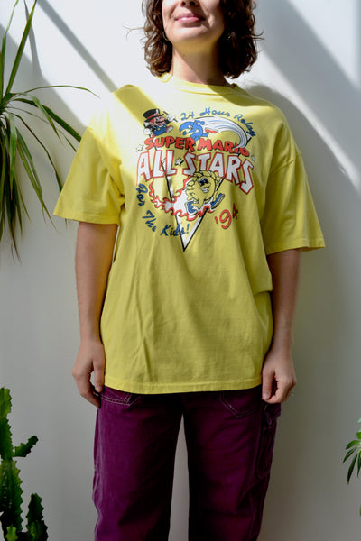 "Super Mario All-Stars 24 Hour Relay For The Kids! '94" Vintage Yellow Single Stitch Tee.