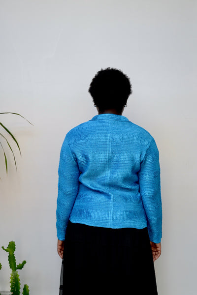 2000s Teal Blue Crinkle Button Up Blouse. Classic Collar. Unlined.